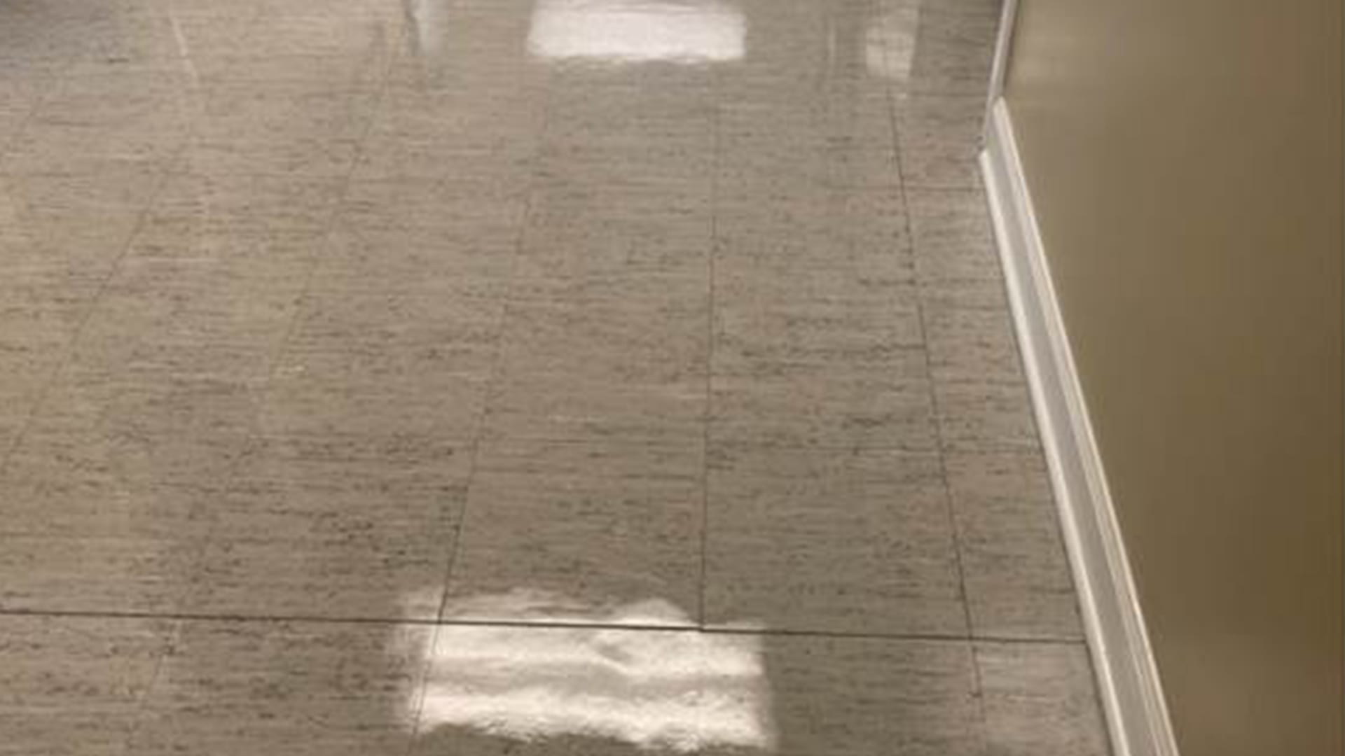 Our VCT tile maintenance includes stripping and waxing, scrubbing and adding wax. Also the monthly maintenance includes dust-mop, mopping and buffing.